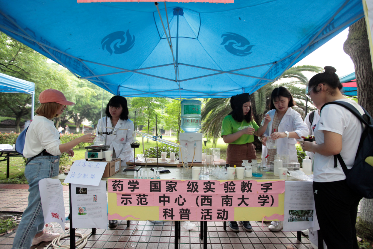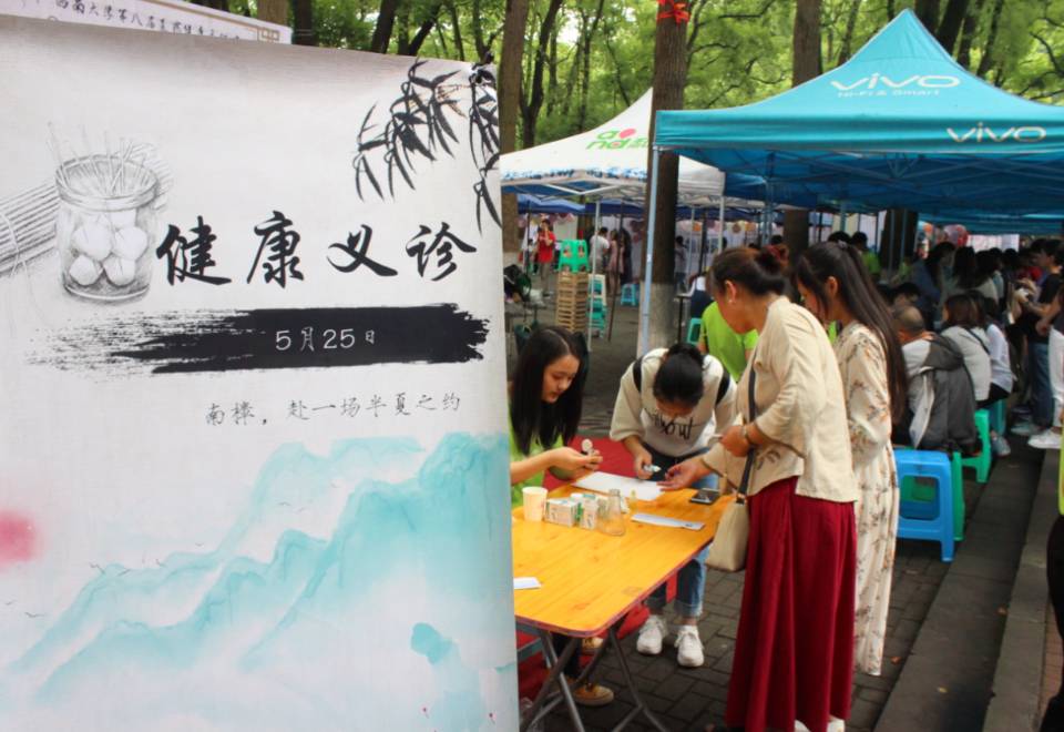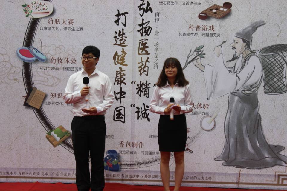 为庆祝新中国成立七十周年,展示英国365上市公司的精神、文化内涵,宣传英国365上市公司特色,增强同学们弘扬中医中药文化的使命感和责任感,继承与弘扬祖国传统中医药文化,由英国365上市公司员工处、英国365上市公司主办的以“打造健康中国,弘扬医药精诚”为主题的第八届医药健康文化节于5月25日早上十点在南区樟树林拉开了帷幕。员工处副长高德香、校团委副书记于涛、公司党委书记夏德全、公司党委副书记杨坚、英国365上市公司团委书记肖媛媛参与了此文化节。还有北碚记者到现场进行采访。