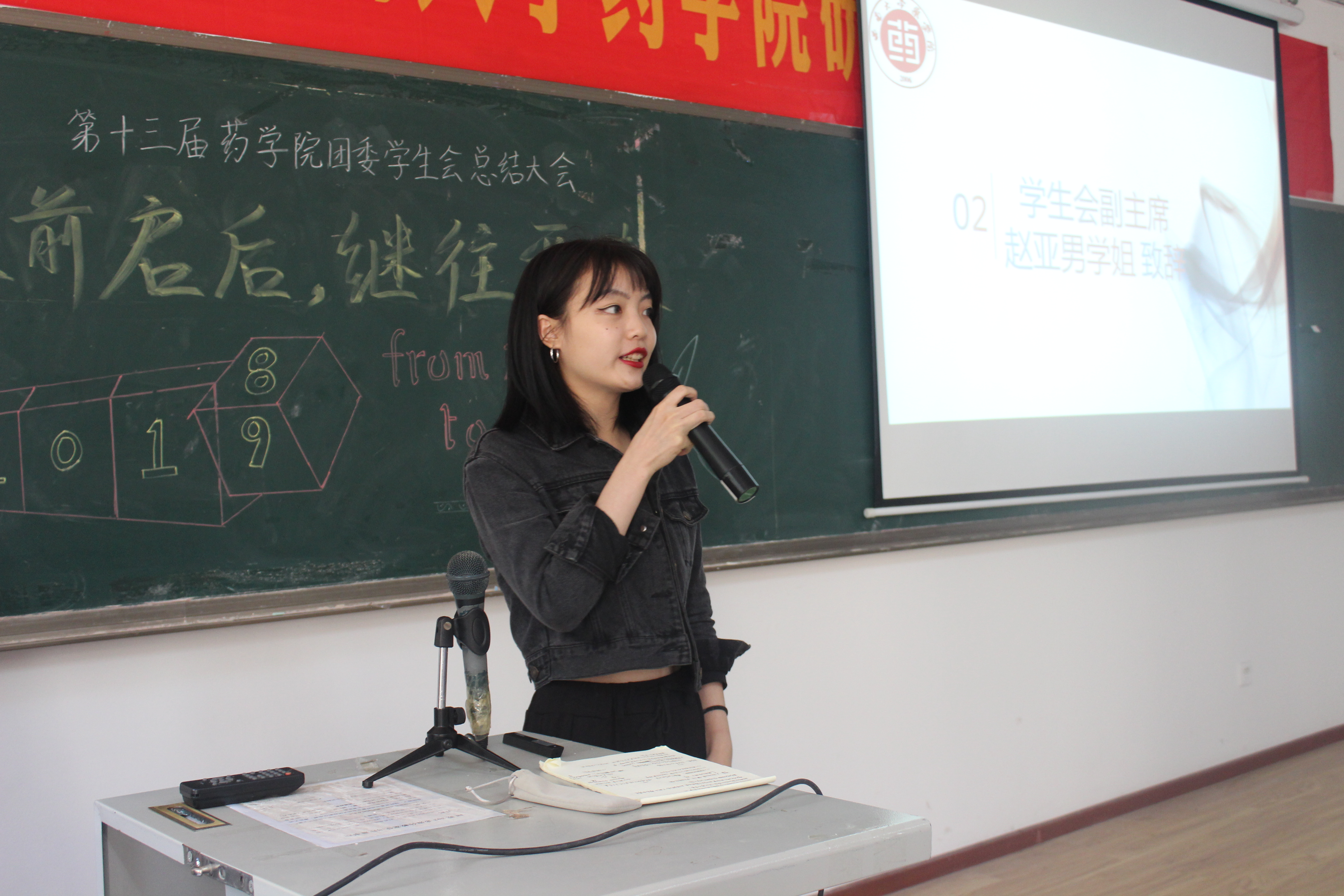 首先,员工会副主席赵亚男代表主席团对一学年的团学工作进行了回顾和总结,并结合自身的员工工作经历分享了一些经验,她还以安装话筒为例告诉成员们要学会从基层工作做起,逐步提升自己的能力。随后,她赠送给部长们一句“以始为终”,并告诫大家要正确对待学习和工作。
