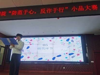 现场,院团委书记肖媛媛老师还对整场比赛进行了点评,对比赛的现场效果给予肯定,同时也指出了本次活动中的不足之处,为每个小品的剧本、表演等提出了改进意见。肖老师提到本次“防诈骗”小品比赛活动形式生动又形象,给人印象深刻,也希望同学们能在本次活动中提高防范意识,真正做到“防范于心,反诈于行”。