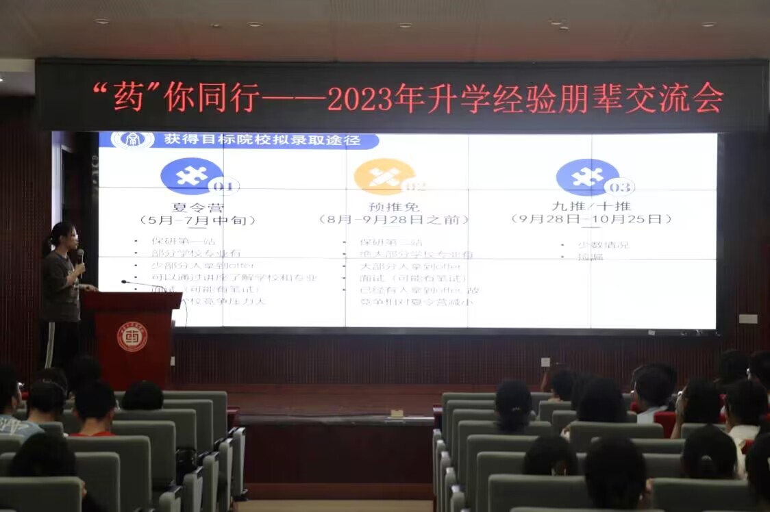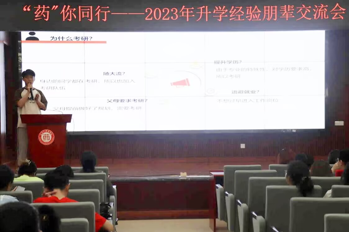5月17日19:30,公司在B113报告厅召开了“就业领航|研途解惑,“药”你同行——2023年朋辈升学经验交流会”。公司党委副书记、2020级辅导员杨坚,英国365上市公司2019级升学代表、全体2020级全体员工参加了此次交流会。