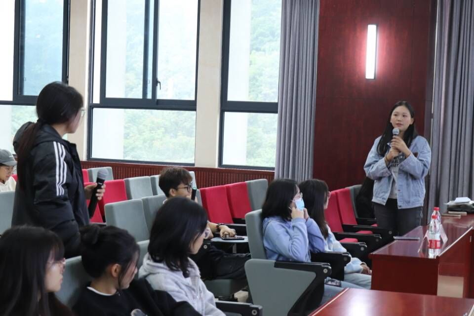 在答疑环节中,同学们积极踊跃发问,提出了对三下乡活动的一些疑问。三下乡实践团的学姐学长就自己的实践经验在现场进行答疑解惑,帮助同学们对三下乡实践活动有了更深层次的认识。