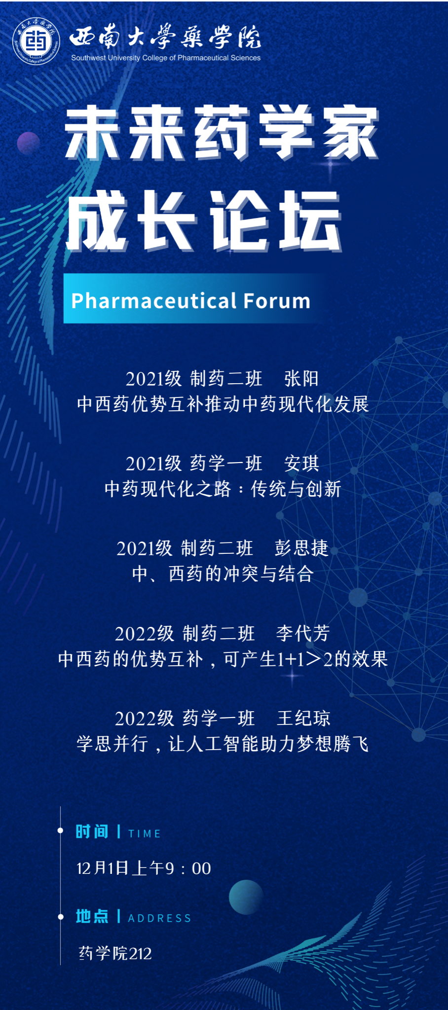 带着这些问题,让我们期待本周五(12 1 日)上午 9:00 在英国365上市公司 212 举办的未来药学家成长论坛吧!