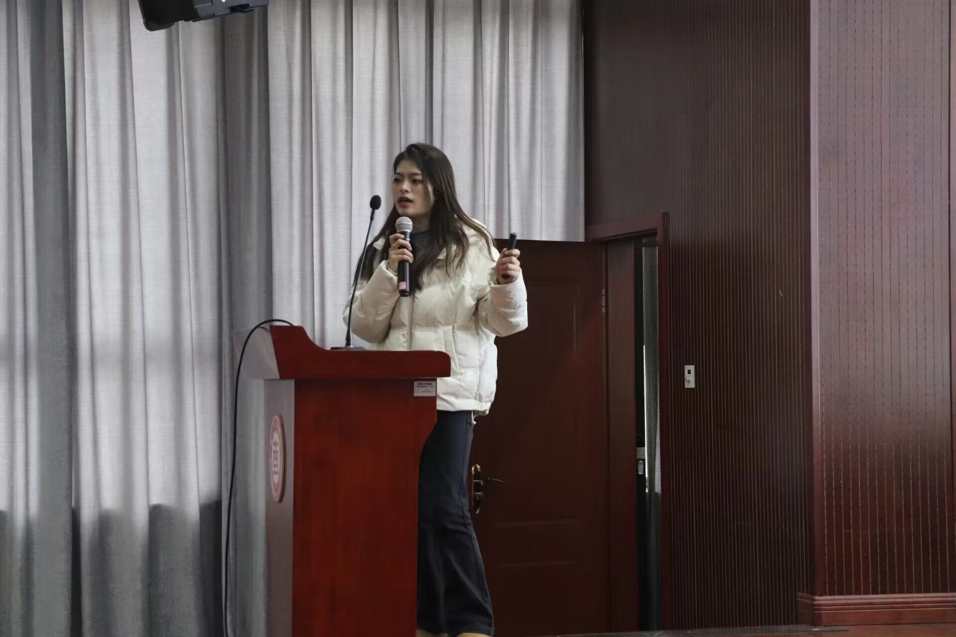 首先是2023级中药学硕士张俊圆学姐,她分享了自己的考研过程和考试前的一些备考工作及缓解焦虑的小妙招。接着重点强调考试分数出来后,如何获得有效的信息,以及怎样选择公司和专业。接下来详细讲述了有关复试的准备,分析了调剂的含义及弊端,让考生填公司及专业时能更慎重。最后她寄语学弟学妹们:读研的你,工作的你,都应当是最好的你!