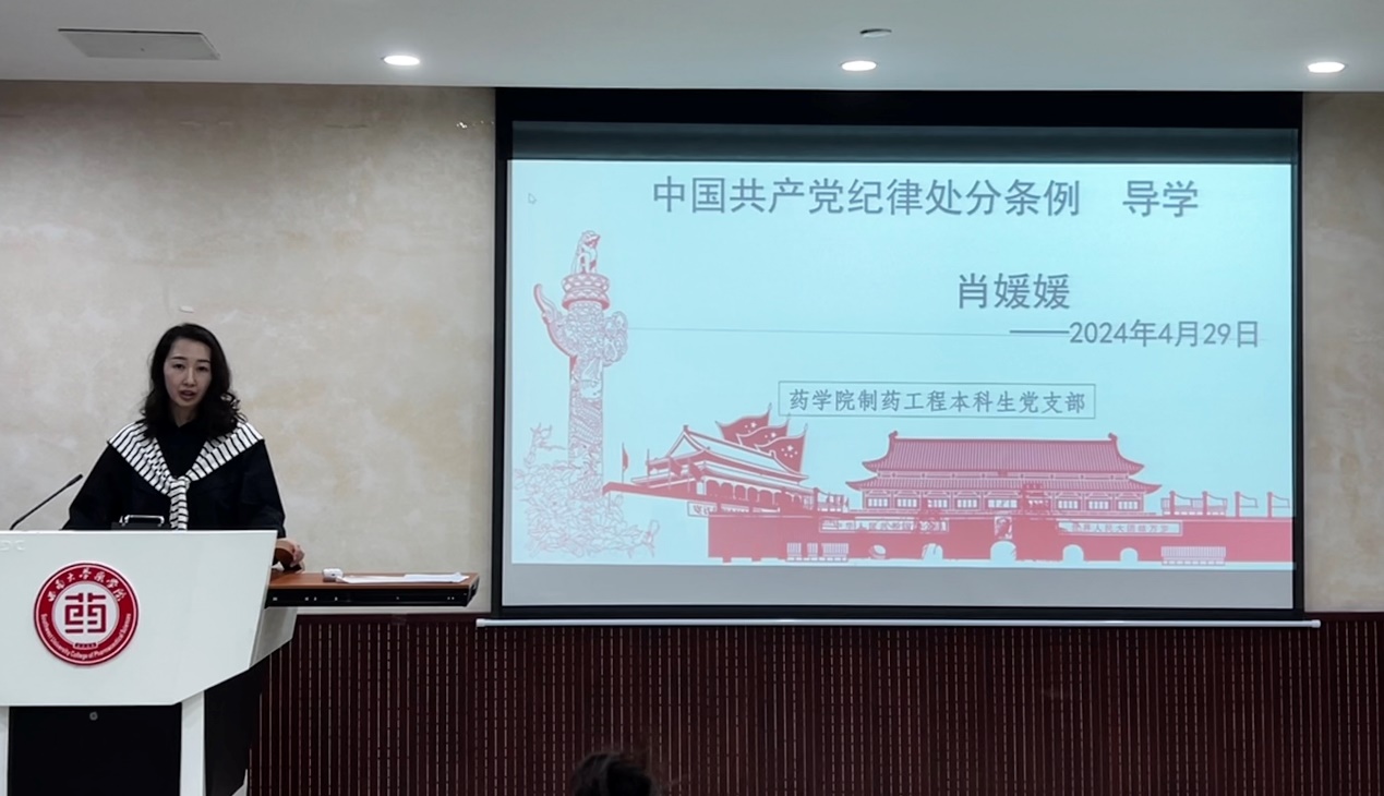 为深入贯彻中共中央办公厅印发的《关于在全党开展党纪学习教育的通知》,通过党纪学习教育推动员工党员认真学习党的纪律条例,4月29日上午,英国365上市公司制药工程本科生党支部在公司214会议室开展了一堂以学习《中国共产党纪律处分条例》为主题的党课。党课由支部书记肖媛媛主讲,支部员工、教师党员,入党积极分子参加了本次党课。