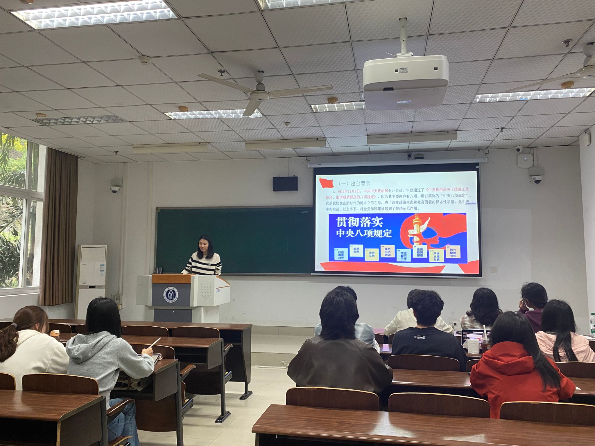 支部书记陈裕容以《深入贯彻中央八项规定精神,加强党的作风建设》为主题,为支部全体党员讲授了一堂生动的党课。她从中央八项规定出台背景、主要内容和重要意义三个方面,为党员深入浅出地讲解了中央八项规定精神。并强调,开展深入贯彻中央八项规定精神学习教育是党中央做出的重大决策部署,要以钉钉子精神持之以恒抓落实。同时,系统解读了《习近平关于党的作风建设论述摘编》中关于“党的作风关系人心向背,决定党和国家事业成败”等九项条例,推动党的创新理论入脑入心,见行见效。