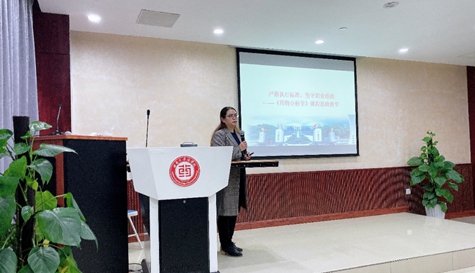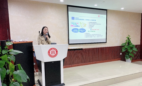 公司肖国君老师做了题为《严格执行标准,坚守职业道德》的主题报告。她首先从吉林长春长生生物疫苗事件引出药品质量安全问题与人们的生命和健康密切相关,详细阐述了课程思政的性质、内涵和目标;并对《药物分析学》课程思政的要素挖掘、设计流程、教学方法进行了详细讲解。