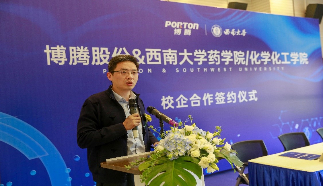 博腾制药总裁朱坡对公司各位老师的到来表示热烈的欢迎并介绍了公司的基本情况,博腾是国内领先的医药研发生产外包组织,主要致力于为全球制药公司、新药研发机构等提供从临床早期研究直至药品上市全生命周期所需的定制研发和定制生产服务,包括原料药生产;创新药品的技术开发、技术服务;化学原料药研究开发、技术转让、技术服务;医药中间体、精细化学品的生产、销售等。校企合作既能发挥公司和企业的各自优势,又能共同培养社会与市场需求的人才,是实现校企合作双赢的模式之一。朱坡总裁对公司领导的信任表示感谢,并对公司的人才培养成果给予了高度的肯定和赞扬,希望可以与公司携手共进,共同培养一批高素质专业人才。
