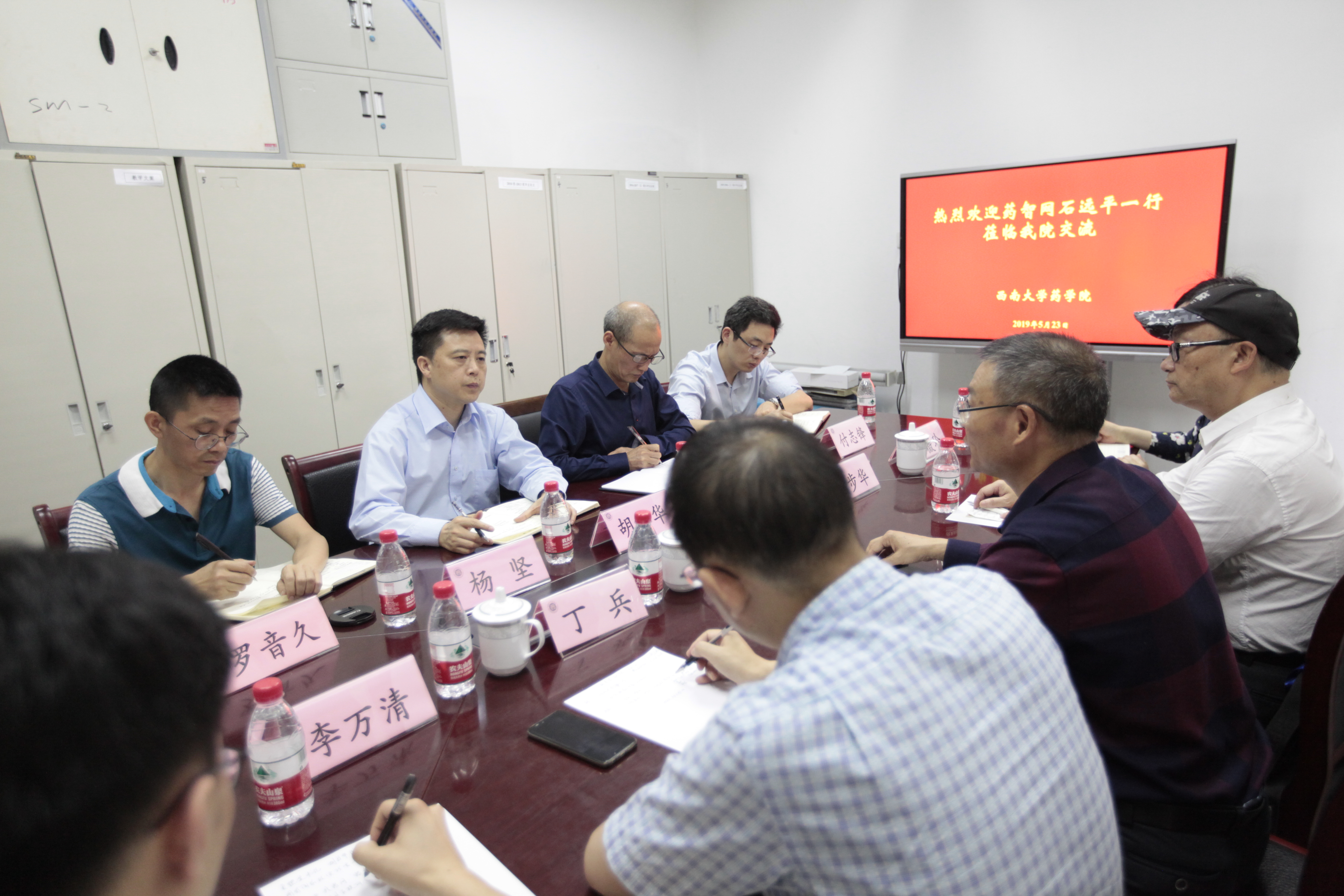 5月23日药智网董事长石远平、副总裁邓步华、营销中心总经理丁兵、总裁助理兼综合部部长李万清、策划部部长范薇琳、数据库顾问黄思瑶一行六人来公司交流座谈,公司经理胡昌华、书记夏德全等出席了座谈会。