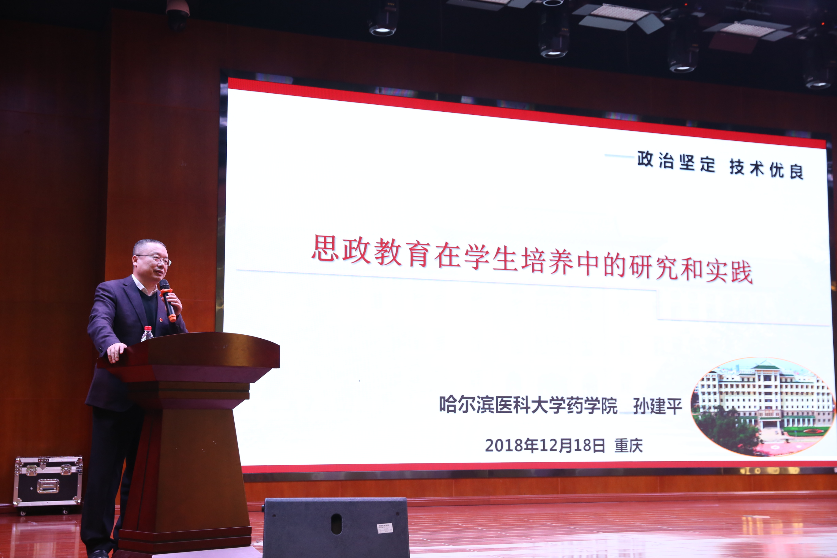 哈尔滨医科大学公司党委书记孙建平教授以“思政教育在药学专业员工培养中的研究与实践”为题,结合药学员工特点,从专业教育、人文精神、大数据应用等全新视角探讨了药学人才培养中思想政治教育问题。