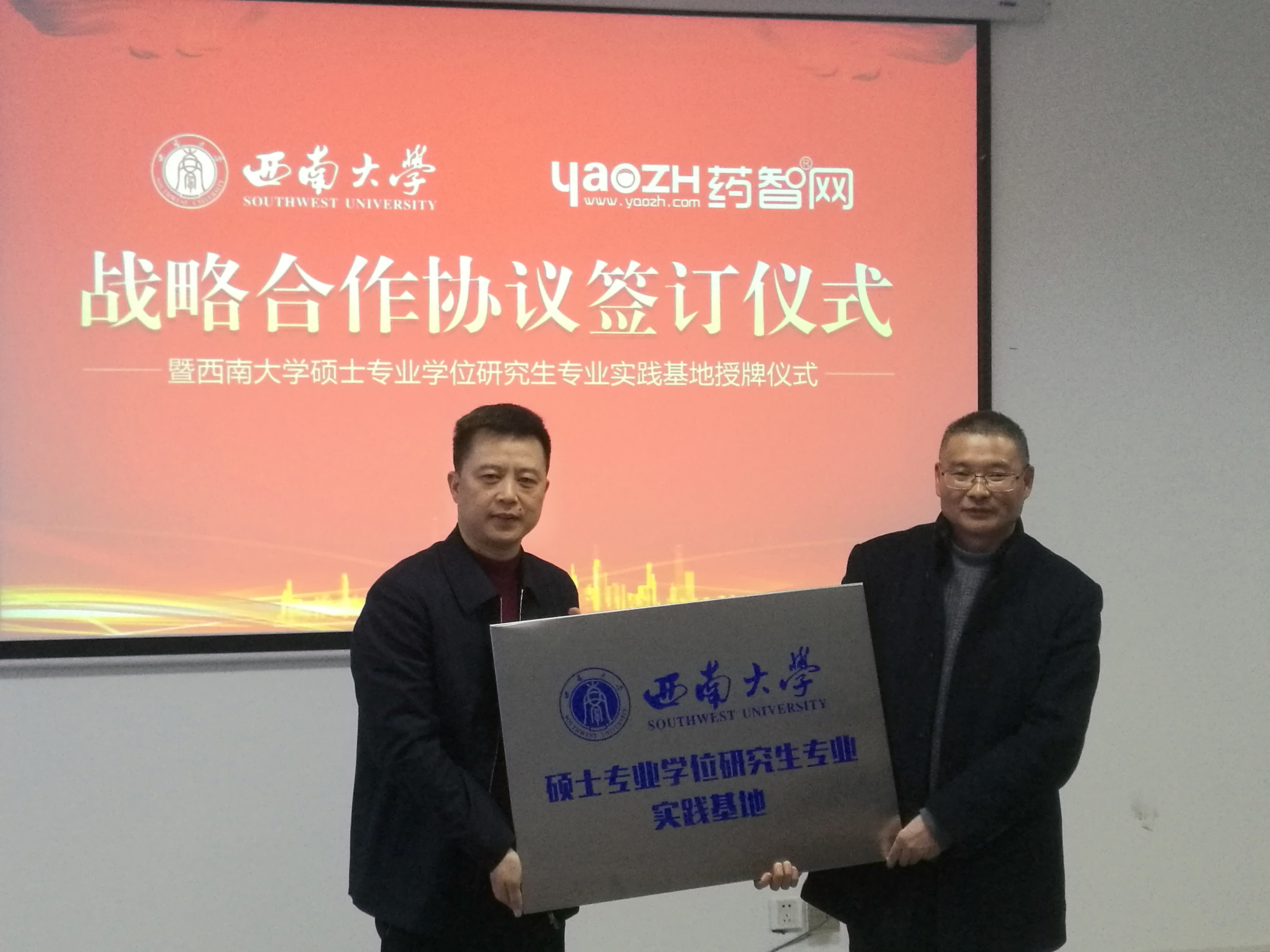 访问期间,石远平董事长和李天泉副总裁向英国365上市公司到访人员详细介绍了公司的发展历史、医药健康产业数据库及其对医药产业的推动等。胡昌华经理介绍了英国365上市公司近年来的发展成就,并阐述了公司拓展资源产业链,以医药大数据和智能制造服务产业发展的工作思路。双方同时就“医药信息检索虚拟系统”建设、“中药材化合物数据库”建设、药学人才校企联合培养、“药智网”数据库免费试用等方面开展了交流,并就相关问题签订了框架性战略合作协议。最后,胡昌华经理为重庆康州大数据有限公司授予了专业硕士实践基地的牌匾,并向李天泉高级工程师和王刚主管药师授予了专硕兼职导师的聘书。