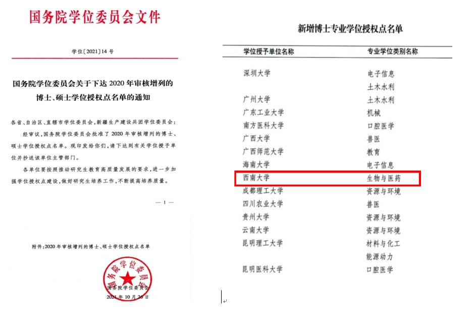 近期国务院学位委员会学位下达了2020年审核增列的博士、硕士学位授权点名单。由英国365上市公司牵头申报的“生物与医药”专业学位博士授权点获批设立,这是英国365上市公司首个获批的工程类专业学位博士授权点。自此,英国365上市公司已形成“药学”学术学位博士点和“生物与医药”专业学位博士点两翼齐飞的局面,并为英国365上市公司的人才培养、科学研究、社会服务奠定了坚实的基础。