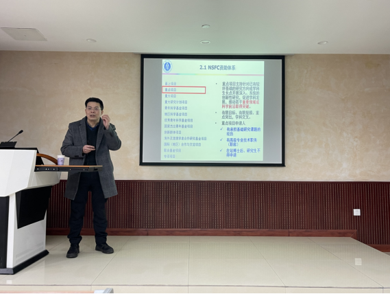 黄承志教授多次获得国家自然基金重点项目、面上项目等,并担任国家自然基金函评会评专家,具有丰富的经验。他从国家科技计划项目申报渠道、NSFC项目资助体系及改革动向、申请书撰写事项三个方面做了介绍,并对每一个类别的自然基金申报要点进行讲解。黄教授介绍说,NSFC项目资助以支持新思想新概念为目标,以真正解决科学问题为准则,以区分和突出科学属性为依据,统筹推进基础研究和应用基础研究。