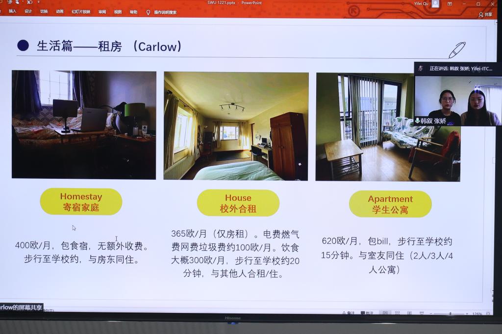 本次交流学习会邀请了2016级本科药学专业毕业生韩叙和张娇从衣、食、住、行等方面分享了出国职工活,并介绍了新冠疫情下的职工活,进而鼓励学弟学妹们勇于挑战自我,走出舒适圈。