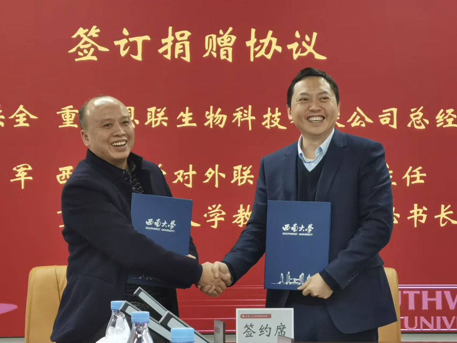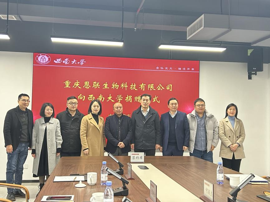 仪式上,公司党委书记陈敏对重庆恩联生物科技有限公司的大力支持表示感谢,对恩联强烈的奉献精神和社会责任感到钦佩,并介绍了公司的基本情况。随后,对外联络办公室主任、公司教育基金会秘书长唐军与重庆恩联生物科技有限公司总经理游洪全签订了捐赠协议。公司党委书记陈敏和重庆恩联生物科技有限公司总经理游洪全交接了捐赠支票。公司党委常委、副董事长白显良向重庆恩联生物科技有限公司总经理游洪全颁发了捐赠荣誉证书。