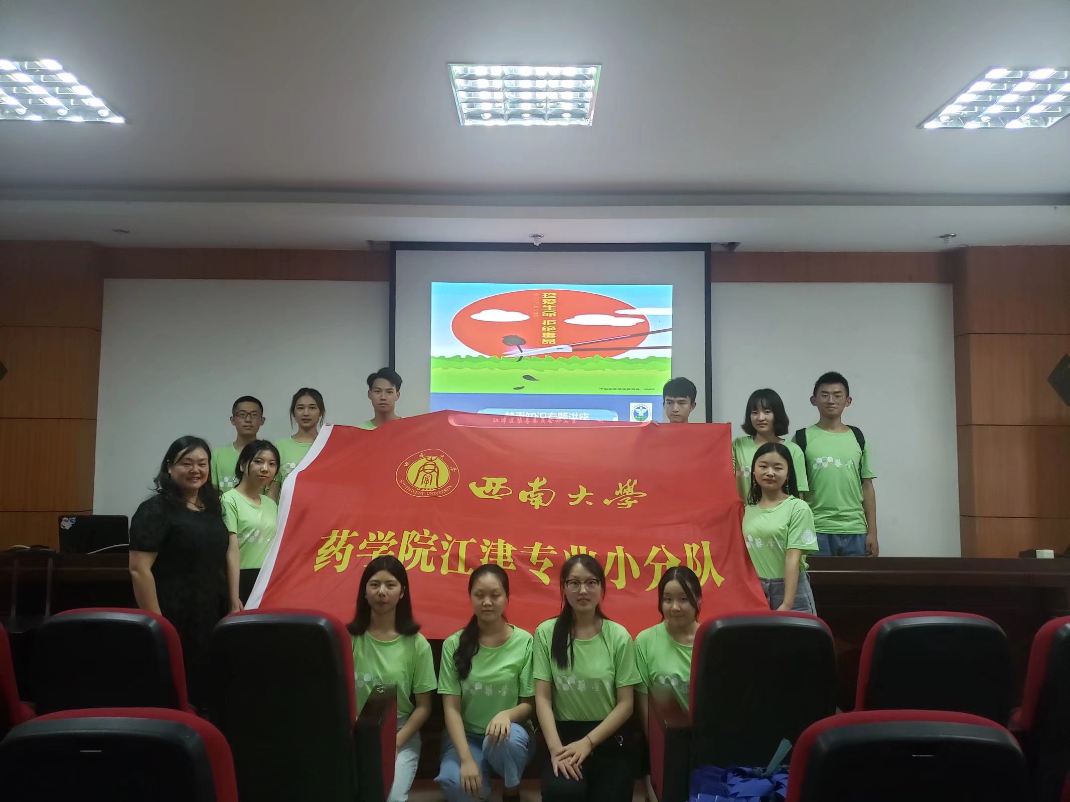 本次三下乡活动中,志愿者们还联合大西门社区与江津区公安局共同举办了以“禁毒防艾”为主题的科普讲座。讲座中,刘警官为当地居民讲述了不同种毒品的性质和毒性,吸毒害处以及部分吸毒案例,居民们互动积极,收获颇丰。此外,志愿者们在活动结束之前去到江津区禁毒教育基地进行参观。