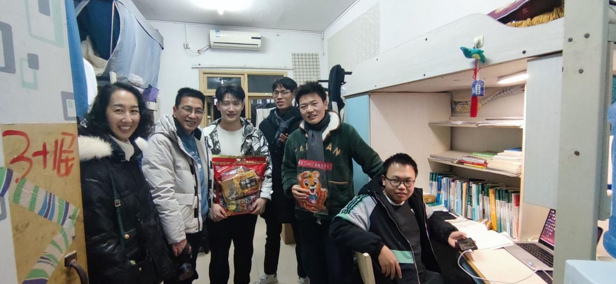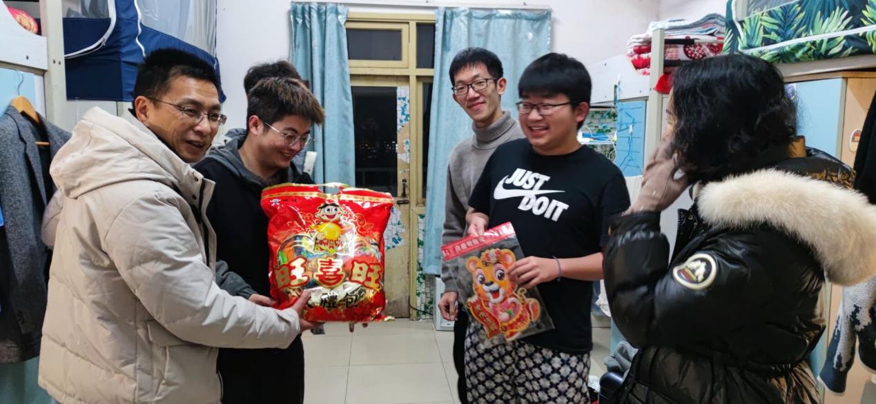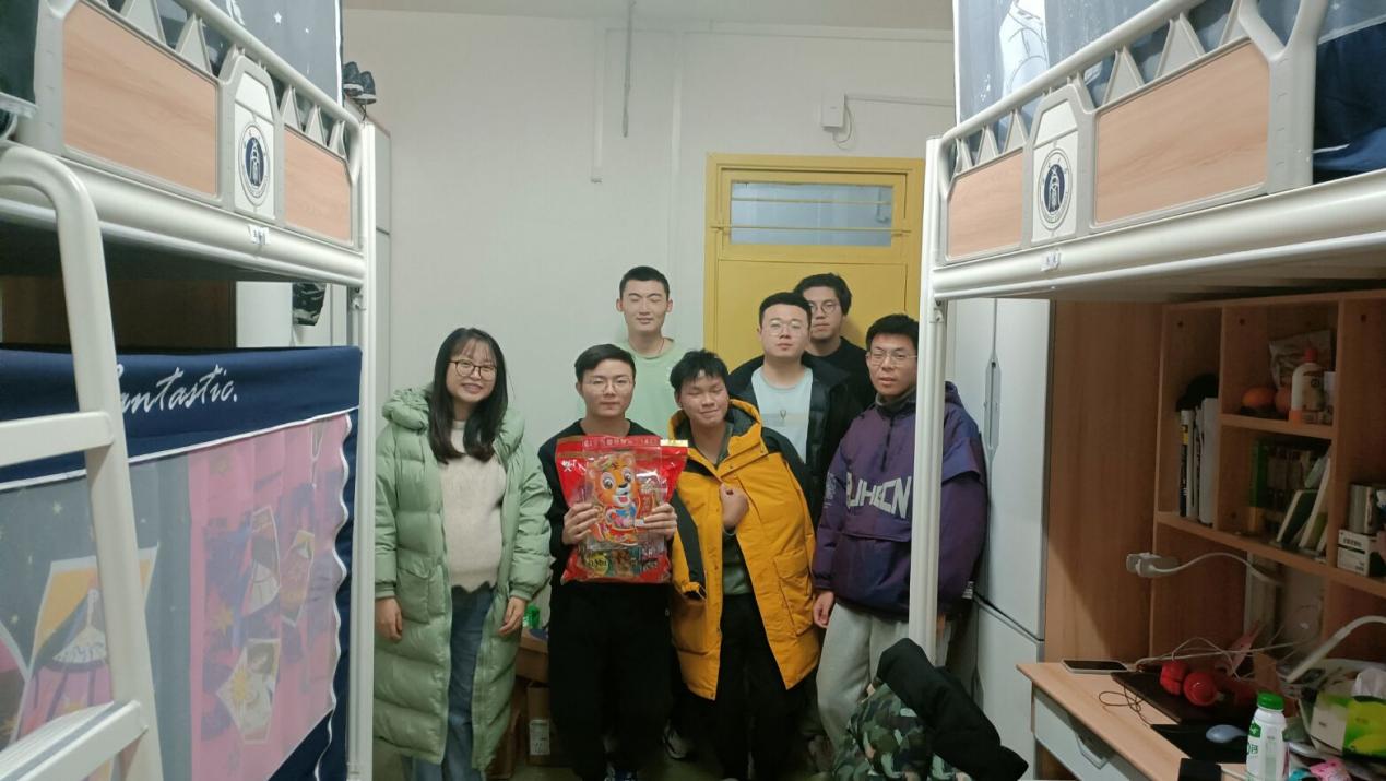 一元复始岁序开,万象归新启风华。在我们回忆2021年的欢笑与幸福的同时,让我们一起迎接崭新的2022年。12月31日晚上20:00,公司党委副书记杨坚、团委书记肖媛媛、辅导员陈雪梅、各年级班主任老师、员工会主席团一行,走进公司员工宿舍,为员工们送上温暖的新年问候,同时也为员工们送上新年礼物。