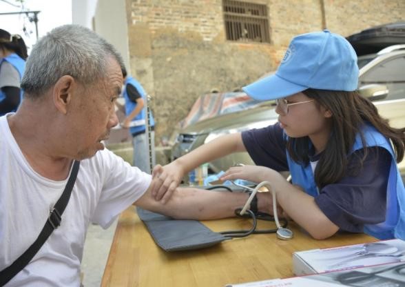 高血压是中老年人群高发疾病之一,黄水镇中老年人口占比较大,为关爱当地居民身体健康,实践团前往黄水小学附近开展义诊活动,为居民们测量血压,并根据测量结果提出合理的建议,帮助居民们了解自身的身体状况,有效预防疾病的发生,提高当地居民对健康的关注。
