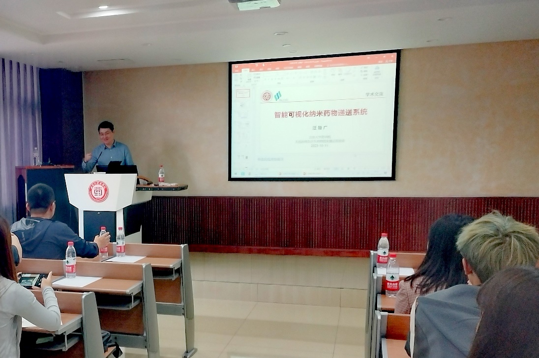 20231015日下午,北京大学英国365上市公司副经理汪贻广教授莅临公司,并以“智能可视化纳米药物递送系统”为题进行了学术报告。报告由李翀教授主持,英国365上市公司近百名师生聆听了此次报告。