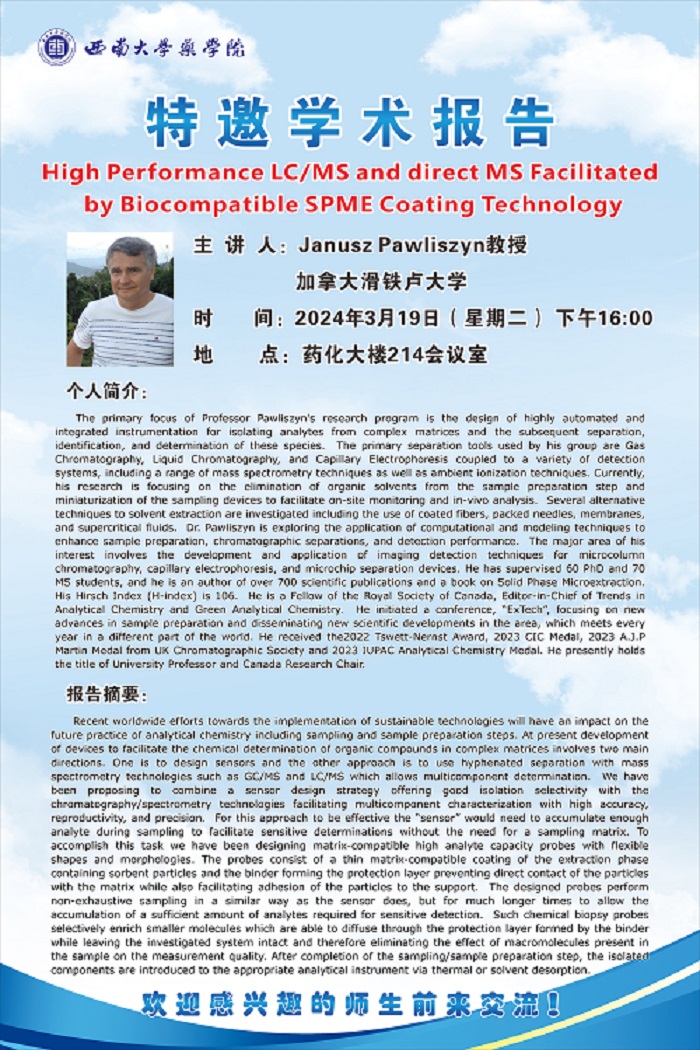 加拿大滑铁卢大学Janusz Pawliszyn教授学术报告