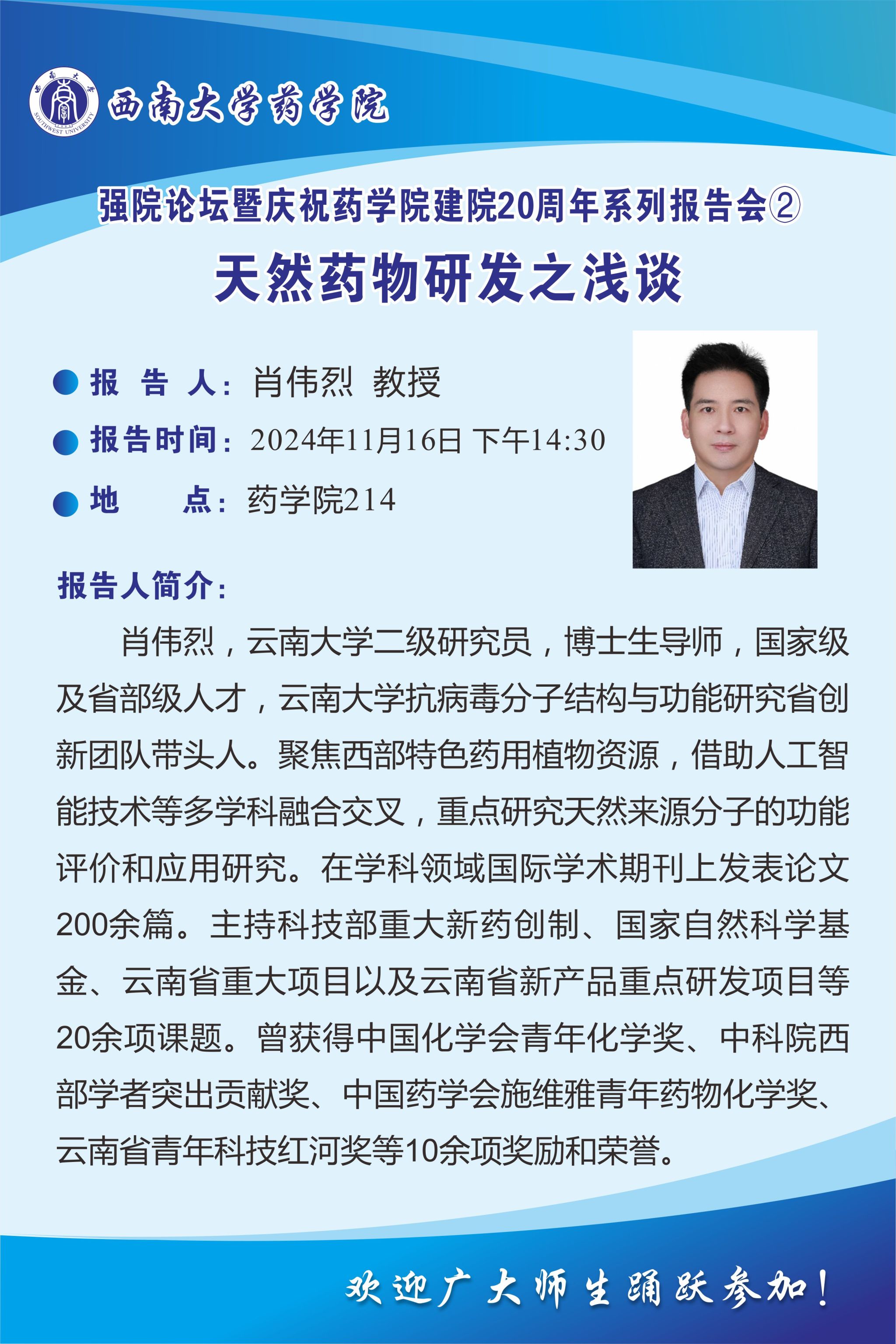 缙云药学论坛暨英国365上市公司建院20周年系列报告会(三):肖伟烈教授学术报告