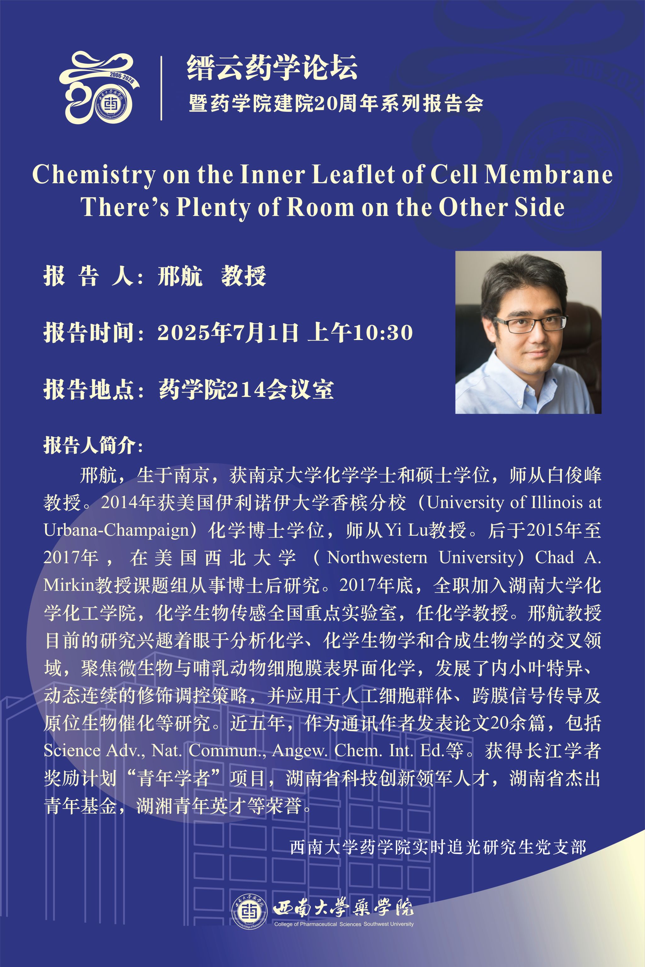 缙云药学论坛暨英国365上市公司建院20周年系列报告会(二十一):刑航教授学术报告