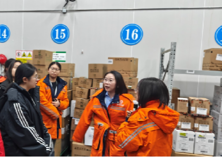 在重庆医药集团和平物流有限公司,师生们在重庆医药集团和平物流有限公司杨克红副总经理的带领下参观了重药物流拣配楼一期高架库区、冷库、验收组、缓存系统、一二期立体库入库区、重药物流DPS拣选区及AGV零品拣选区等,充分感受并体验了自动化仓库和自动分拣系统。